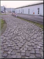 Reihenpflasterung in Nenndingen mit Granit - Kleinpflaster und Basalt - Kleinpflaster